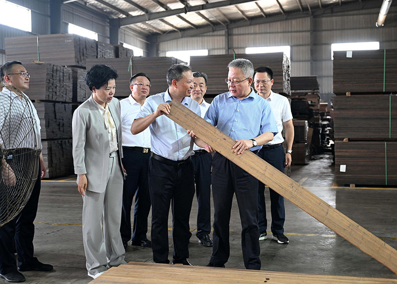 • 湖南省人大常委會(huì)黨組書(shū)記、副主任烏蘭到湖南桃花江竹材調(diào)研